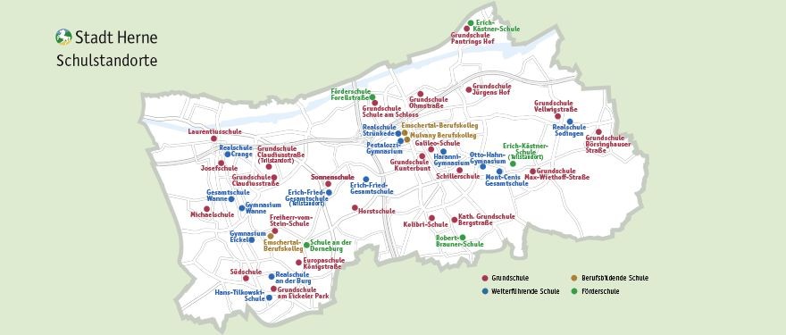 Hier finden Sie die Kontaktinformationen und Webseiten zu allen städtischen Herner Schulen und der Herner Schul-IT.